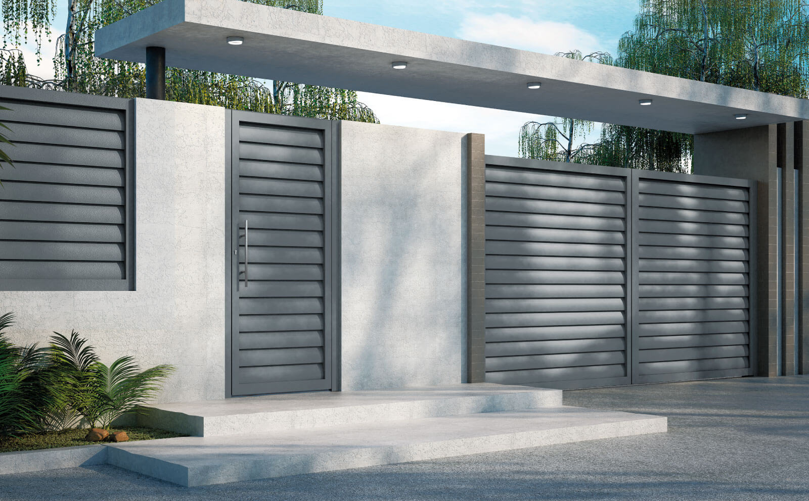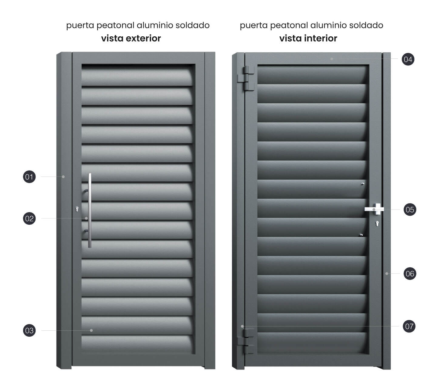 Este modelo de estilo celosía se compone de una lama más grande de lo habitual presentada dentro de un perfil troquelado. Compuesta por una puerta monobloque de una sola pieza, con perfileria de gran espesor y canalizaciones en el interior para el contínuo desagüe del agua y evitar así, la aparición de alúmina.